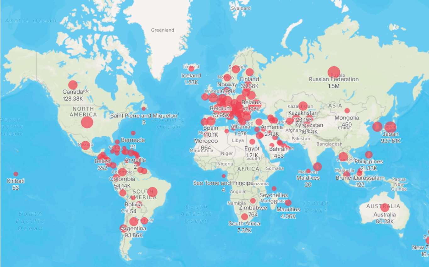 The Johns Hopkins COVID-19 dashboard is widely used to track and visualize the global impact of the COVID-19 pandemic. This example of interactive map data visualization displays real-time data on confirmed cases, deaths, and recoveries at the global and country levels. You can drill down to specific regions and observe trends over time, making it a valuable resource for public health officials, researchers, and the general public.
