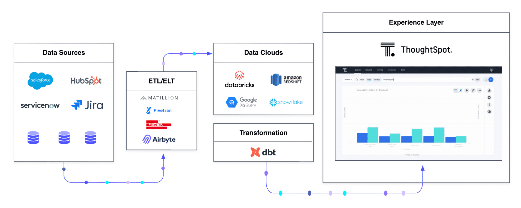 All of these tools are required in order for business users to interact with and draw insights from their data. That’s when data visualization tools like ThoughtSpot come into play.